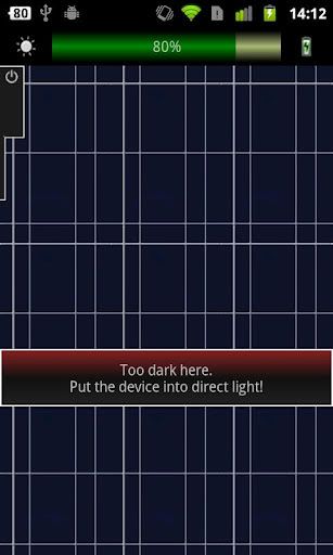 2 : When you run the app, it displays a solar panel on your screen along with a battery indicator and a meter of some sort. If you are in a dark place or at night it asks you to expose your device to direct light.