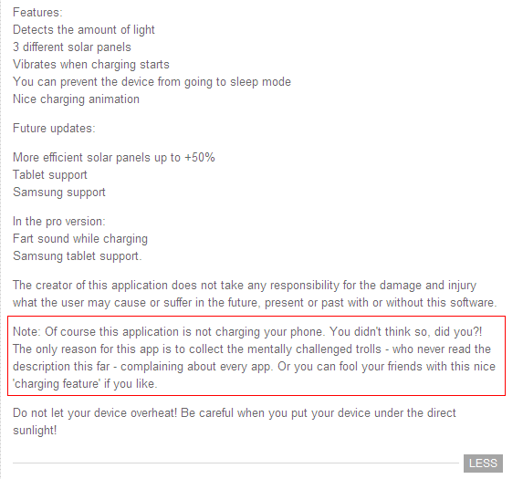 Just look at this screenshot of the app description from the developers themselves, when you click on read more